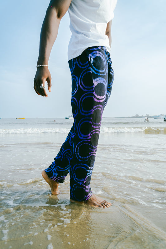 KNF "CIRCLE" INDIGO/VIOLET ADIRE PANTS