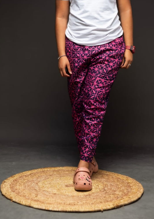 KNF PINK x INDIGO GEOMETRIC PRINT PANTS