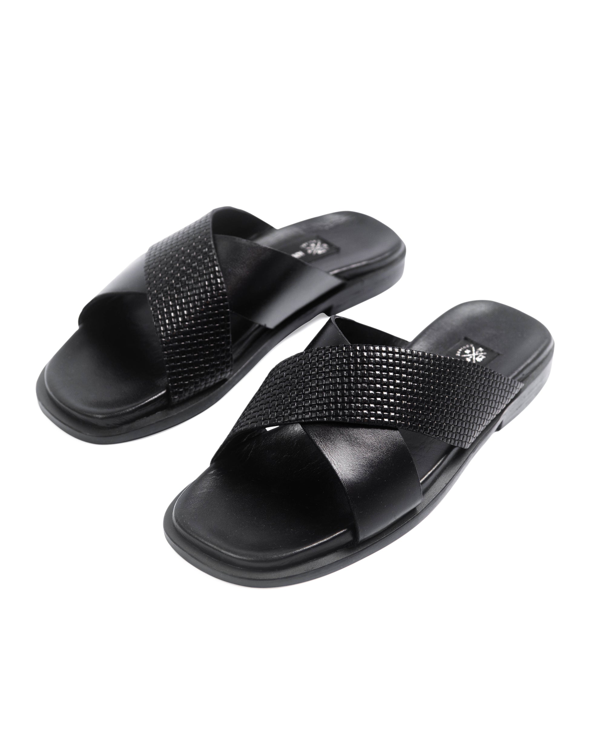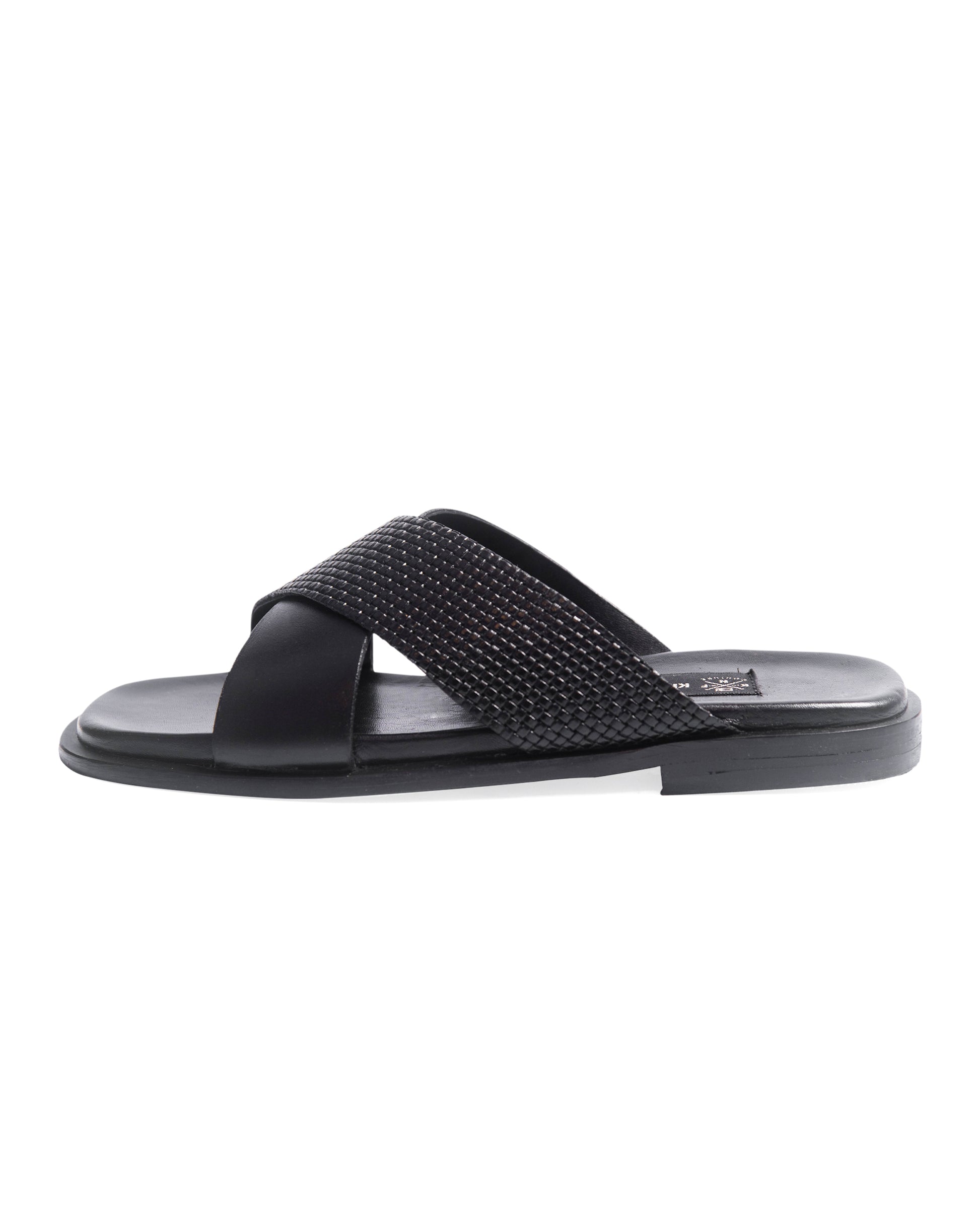 KNF 2-TONE BLACK LEATHER CROSS SLIPPERS